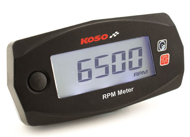 - KOSO's mini RPM tach is a surface mountable Tachometer that is accurate to 20,000 rpms and features a resetable maximum RPM recall. This multifunction meter is programable to nine different firing patterns to accomodate two and four-stroke engines.